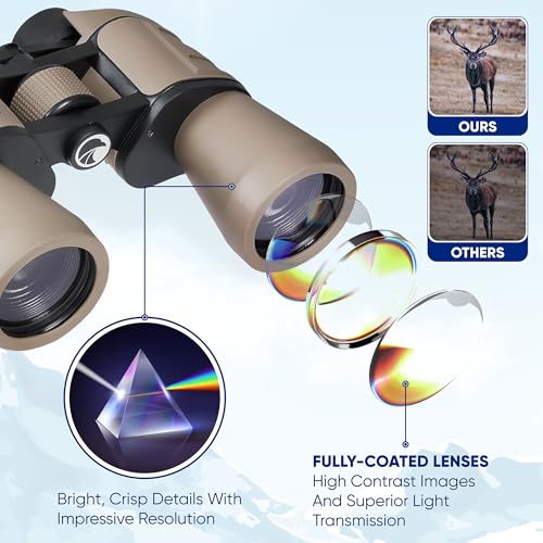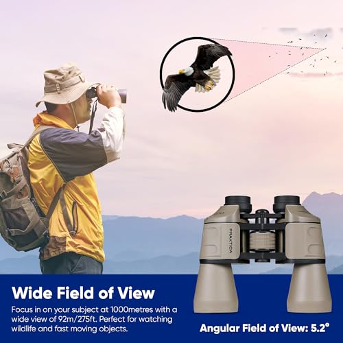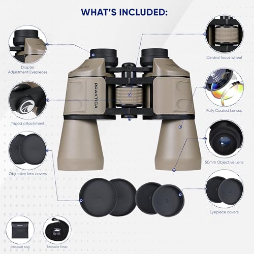 Praktica Falcon 10x50mm Porro Prism Field Sand Binoculars - Fully Coated Lenses, Sturdy Construction, Aluminium Chassis, Sharp Clear Image, Bird Watching, Sailing, Hiking, Sightseeing, Astronomy