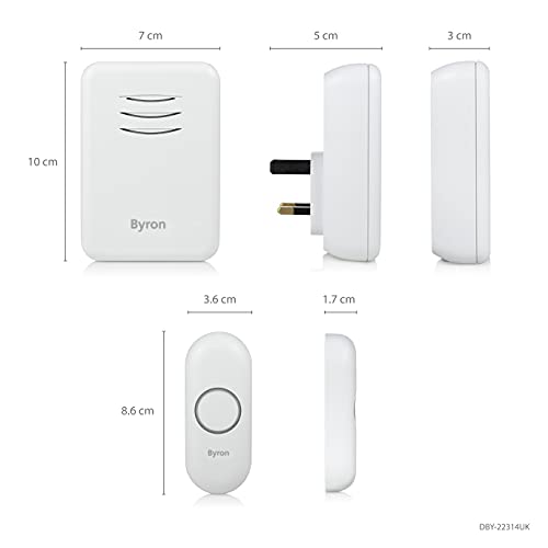 Byron Wireless Doorbell Set, Portable Battery-powered Chime & Plug-In Chime, 150m Range in open field, 16 Melodies, DBY-22314UK