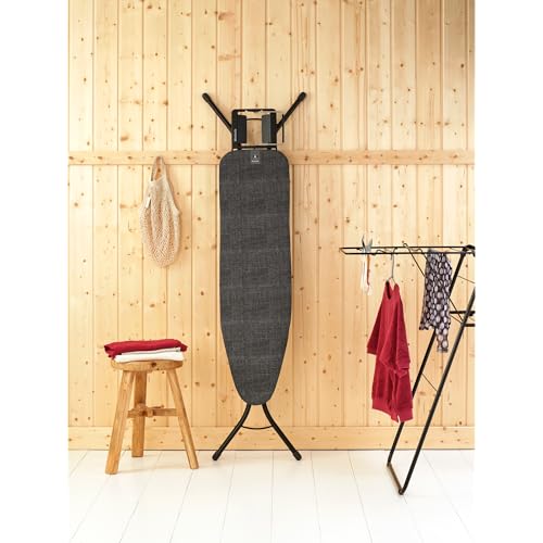 Brabantia - Ironing Board A - With Steam Iron Rest - Adjustable in Height - Non-Slip Rubber Feet - Cotton Cover with Foam Layer - Foldable - Denim Black - 110x30 cm