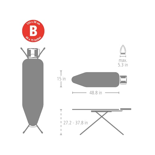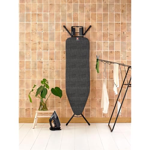 Brabantia - Ironing Board B - With Adjustable Iron Rest - Adjustable in Height - Non-Slip Rubber Feet - Cotton Cover with Foam Layer - Foldable - Denim Black - 124x38 cm