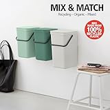 Brabantia Sort & Go Waste Bin 12L (Fir Green), Space-Efficient Plastic Recycle Container with Handle, Removable and Stay-Open Lid, Easy to Clean Kitchen Bin without Nooks and Rims