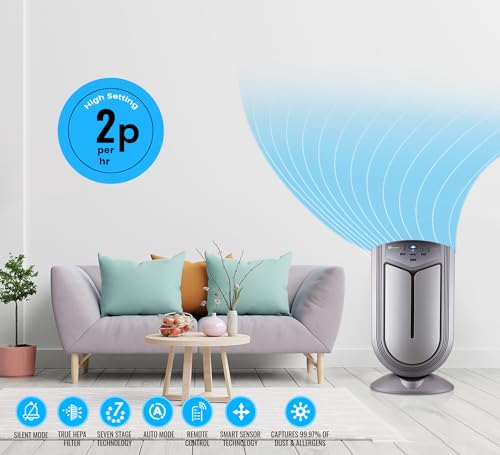 NaturoPure 7 in 1 Multiple Technologies Intelligent Air Purifier & Ioniser with True HEPA & Active Carbon Filters, Removes Allergies,Odours,Smoke,Dust,Mold,Pets,Pollen,Cooking, Coverage Area 650 ft²