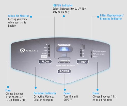 PureMate HEPA Air Purifier and Ioniser with UV Sanitiser Eliminates viruses, 28 Inches