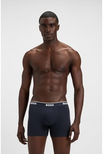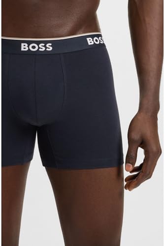 BOSS Mens BoxerBr 3P Power Three-Pack of Stretch-Cotton Boxer Briefs with Logos
