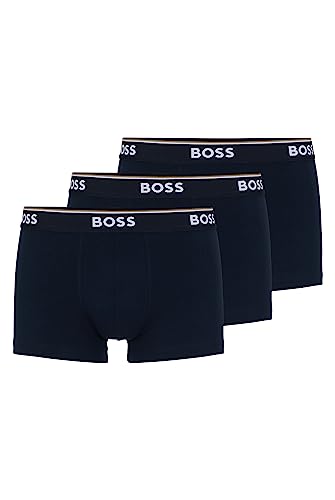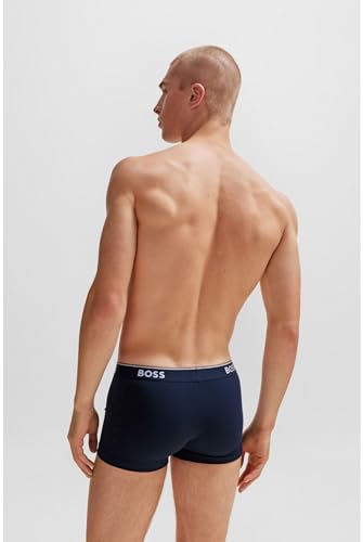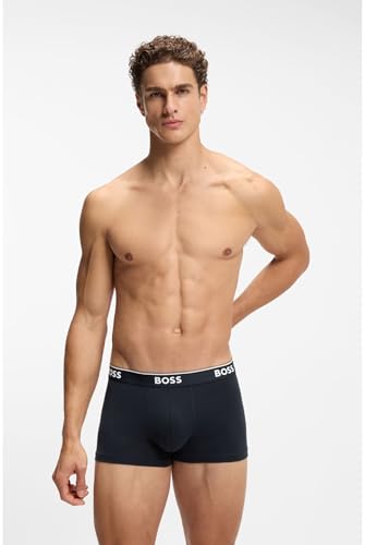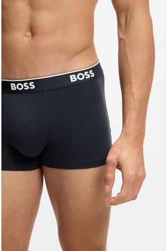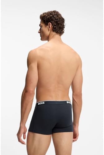 BOSS Mens Trunk 3P Power Three-Pack of Logo-Waistband Trunks in Stretch Cotton