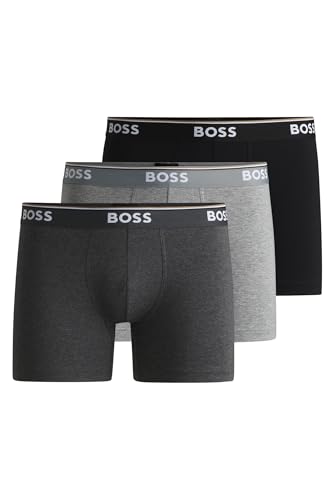 BOSS Mens BoxerBr 3P Power Three-Pack of Stretch-Cotton Boxer Briefs with Logos