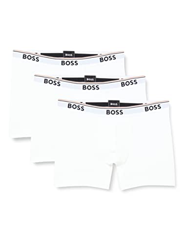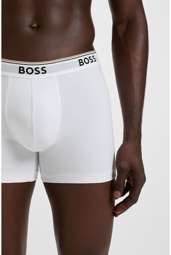 BOSS Mens Trunk 3P Power Three-Pack of Logo-Waistband Trunks in Stretch Cotton