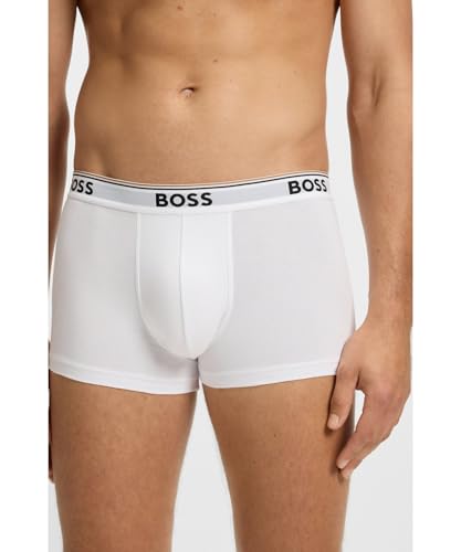 BOSS Mens Trunk 3P Power Three-Pack of Logo-Waistband Trunks in Stretch Cotton