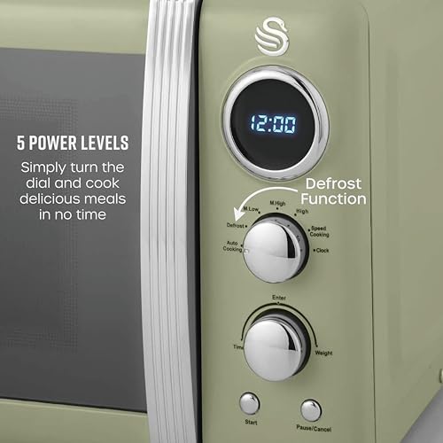 Swan Retro Digital Microwave Green LED Bulb 20L 5 Power Levels / Defrost 800W
