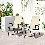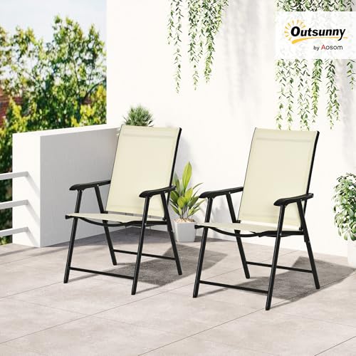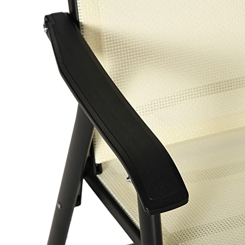 Outsunny Set of 2 Folding Garden Chairs, Metal Frame Garden Chairs Outdoor Patio Park Dining Seat with Breathable Mesh Seat, Beige