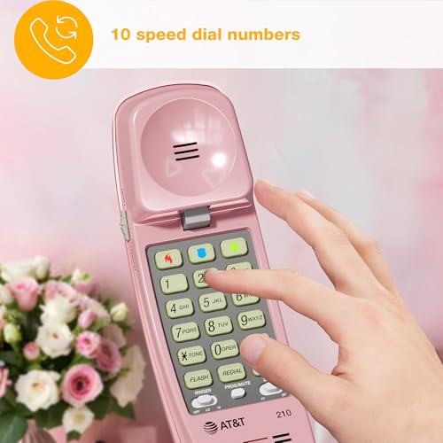 AT&T TRIMLINE 210 Corded Home Phone, No AC Power Required, Improved Easy-wall-mount, Lighted Big Button Keypad, 13 SpeedDial Keys, Last Number Redial, Mute, Flash, Volume Control, Princess Phone, PINK