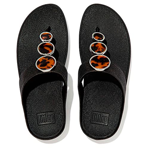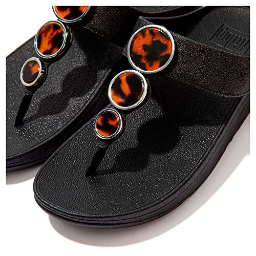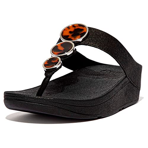 Fitflop Women's Halo Shimmer Toe-Post Sandals Wedge, Black, 6 UK