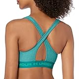Under Armour Women's Crossback Mid Impact Heather Sports Bra, Opaque, (722) Coastal Teal / / Lime Surge, XL
