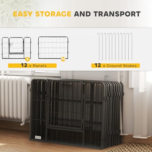 PawHut Heavy Duty Puppy Play Pen, 12 Panels Pet Exercise Pen, for Indoors, Outdoors