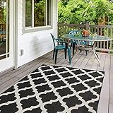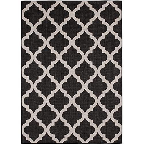 THE RUGS MOROCCAN TRELLIS DESIGN BLACK Outdoor & Indoor Rug for Garden Patio | UV-Protected Jet-Washable Outdoor Rug| Ecology 400BL
