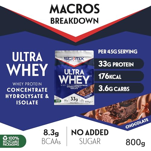 SCI-MX Ultra Whey Protein Muscle Building & Recovery Protein Powder With Naturally Occurring Glutamine & Amino Acids - Chocolate Flavour - 800G - 18 SERVINGS