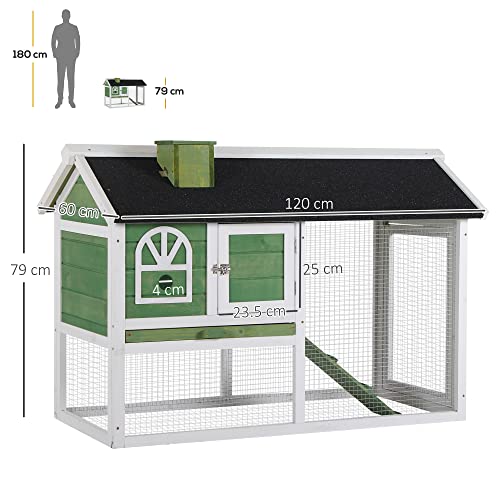 Pawhut - Rabbit Hutch and Run Guinea Pig Hutch Wooden Bunny Cage Asphalt Roof Green