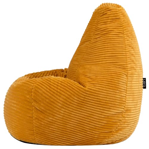 icon Dalton Kids Bean Bag, Ochre Yellow, Cord Kids Bean Bag Chair with Filling Included for Girls and Boys, Childrens Chair, Beanbags for Children, Playroom Décor, Bedroom Accessories