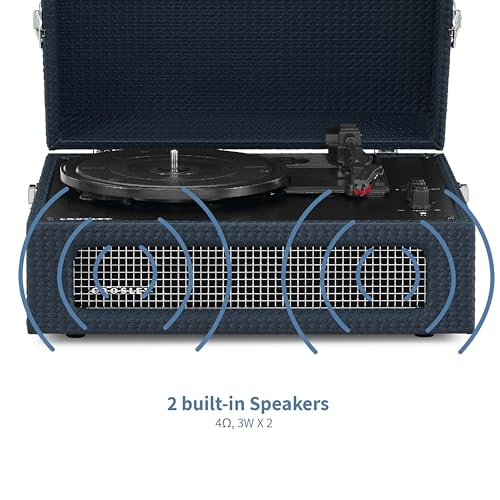 Crosley Voyager Portable Turntable - Bluetooth Record Player, 3-Speed Suitcase Vinyl Player, Home Turntables for Vinyl Records, Built in Stereo Speakers & Bluetooth Receiver, AUX Input, Navy Blue