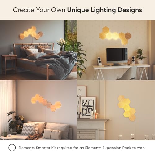 Nanoleaf Elements Hexagon Starter Kit, 13 Wood Look LED Smart Light Panels - Dimmable & Modular Wi-Fi Wall Mood Lights, Works with Alexa Google Assistant Apple Homekit, for House Room Decor or Desk