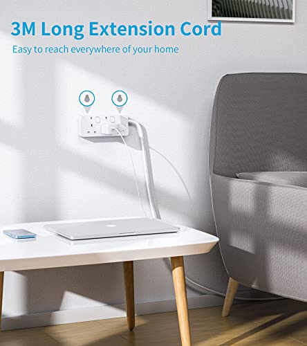 PIBEEX Extension Lead 2 Way Plug Sockets with Individual Switches Wall Mountable Power Strip 3M Extension Cable 13A Fused UK Plug 3250W