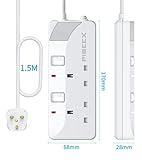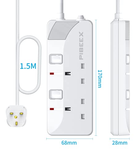 PIBEEX Extension Lead 2 Way Plug Sockets with Individual Switches Wall Mountable Power Strip 1.5M Extension Cable 13A Fused UK Plug 3250W