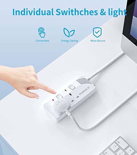 PIBEEX Extension Lead 2 Way Plug Sockets with Individual Switches Wall Mountable Power