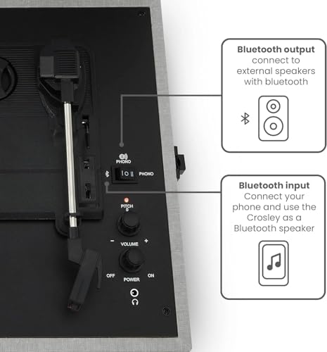 Crosley Voyager Portable Turntable - Bluetooth Record Player, 3-Speed Suitcase Vinyl Player, Home Turntables for Vinyl Records, Built in Stereo Speakers & Bluetooth Receiver, AUX Input, Grey