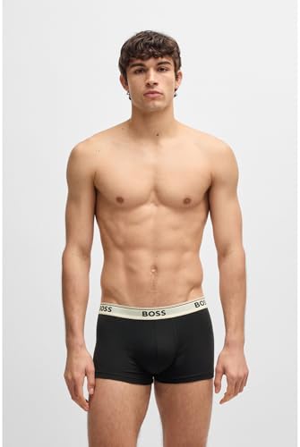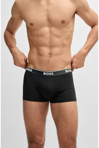 BOSS Mens Trunk 3P CO/EL Three-Pack of Logo-Waistband Trunks in Stretch Cotton
