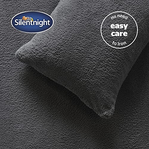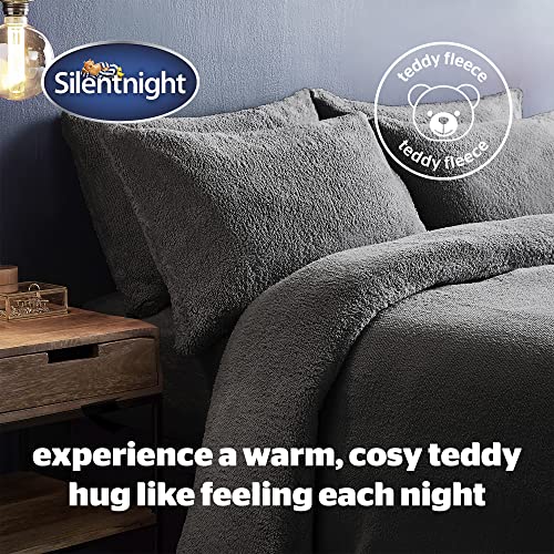 Silentnight Teddy Fleece Duvet Set – Teddy Bear Bedding Fluffy Fleece Duvet Cover and Pillowcase Set Warm Cosy and Super Soft – Single – 135x200cm – Charcoal Grey