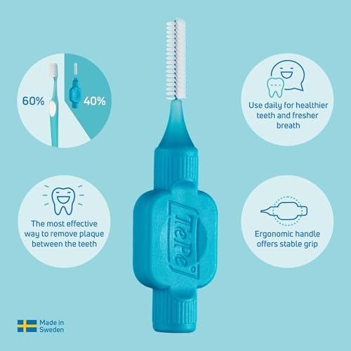 TePe Interdental Brush, Original, Blue, 0.6mm/ISO 3, 20pcs, Plaque Removal, efficient Clean Between The Teeth, Tooth Floss, for Small Gaps