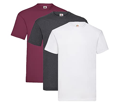 Fruit of the Loom Valueweight T-Shirt Various Colour Sets S M L XL XXL 3XL 4XL 5XL, 1 x white + 1 x burgundy + 1 x dark heather + 1 x purchase notepad, L