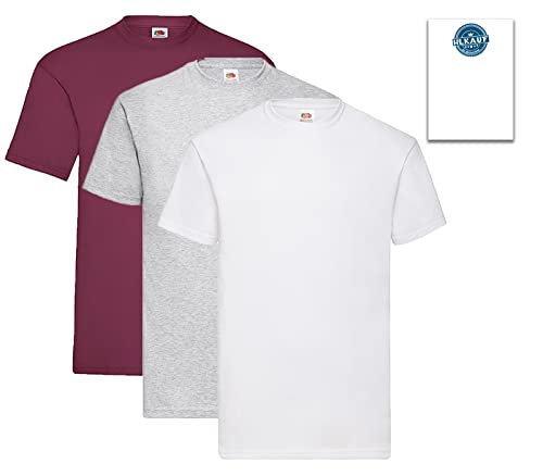 Fruit of the Loom Valueweight T-Shirt Set, S M L XL XXL 3XL 4XL 5XL, Burgundy, Grey, White, Purchase Notepad, L