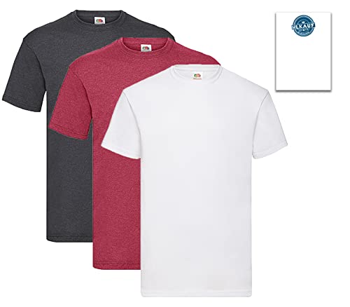 Fruit of the Loom Valueweight T-Shirt Various Colour Sets S M L XL XXL 3XL 4XL 5XL, 1 x white + 1 x vintage heather red + 1 x dark heather + 1 x purchase notepad, 3XL