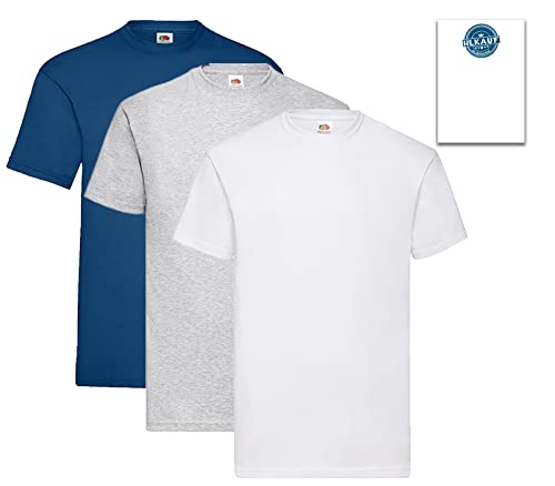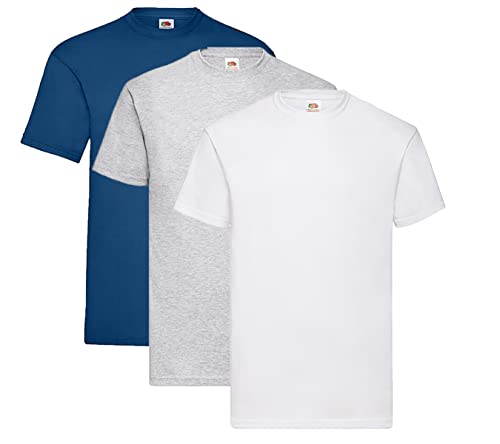 Fruit of the Loom Valueweight T-Shirt Various Colour Sets S M L XL XXL 3XL 4XL 5XL, White + Grey + Navy + Purchase Notepad, XXL