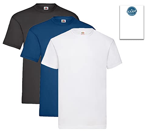 Fruit of the Loom Valueweight T-Shirt Various Colour Sets S M L XL XXL 3XL 4XL 5XL, 1 x black + 1 x navy + 1 x white + 1 x purchase notepad, M