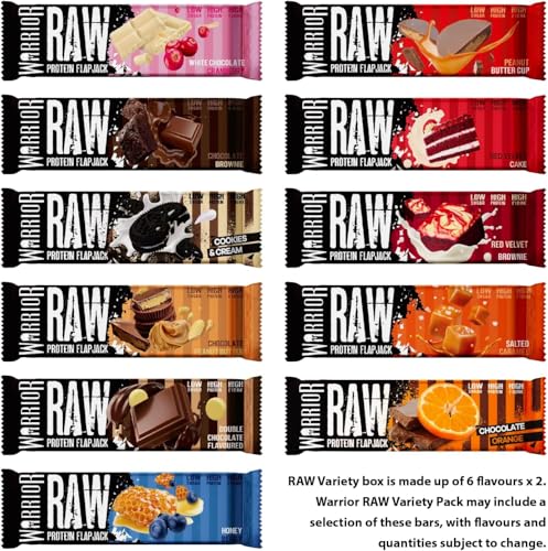 Warrior Raw Protein Bars – 12 x 75g High Protein Snack – High Fibre, Low Sugar – Ideal Meal Replacement or Healthy Nutrition Energy Snacks - Oat Bar Flapjacks – UK Made (Variety Box)