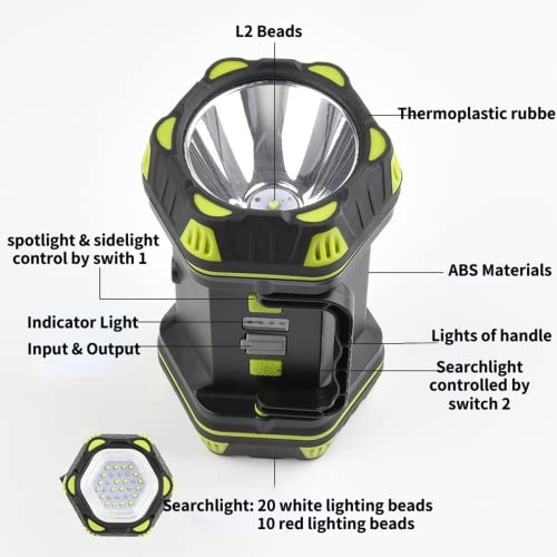 LETOUR Rechargeable LED Torch, 4000Lumens Multi-Functional Camping Light Super Bright Flashlight 8 Modes LED Searchlight, 4800mAh Power Bank, IP65 Waterproof Outdoor Tent Spotlight Lantern