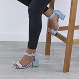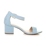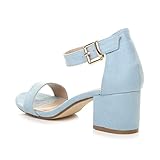 AJVANI Womens Mid Block Heel Ankle Strap Heeled Sandals in Baby Blue Size: 5 - Baby Blue - Size: 5