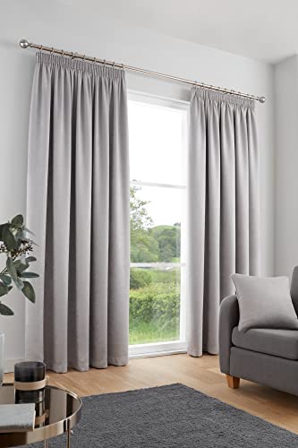 Fusion Galaxy Pair of Light Reducing Thermal Effect Pencil Pleat Curtains in Silver Size: 229 cm width x 229 cm drop Silver 229 cm width x 229 cm drop