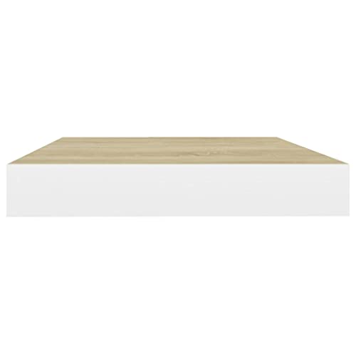 vidaXL Floating Wall Shelf Oak and White MDF Home Bookcase Wall Board CD Rack