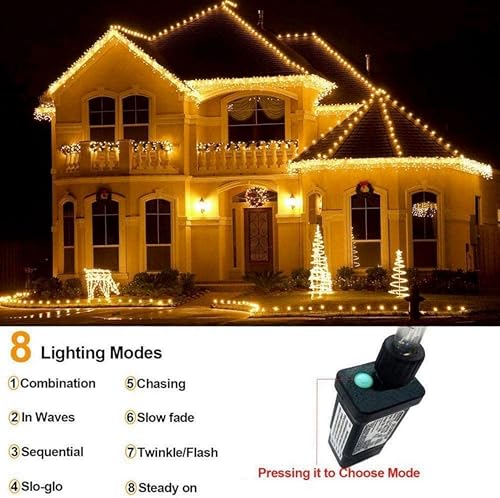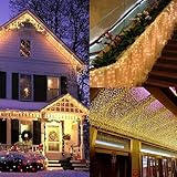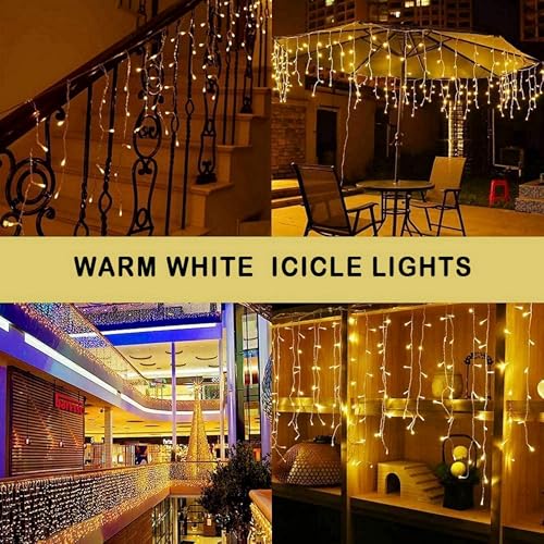 SHATCHI 480LEDs Waterfall Icicle Christmas Lights Warm White - Multifunction 8 Modes, Timer Clear Cable Indoor/Outdoor Low Voltage Waterproof Curtain Light Christmas Decoration