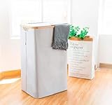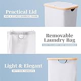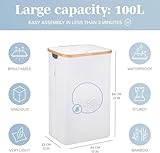 LONBET 100L Laundry Basket with Lid and Sturdy Bamboo Frame - Aesthetic Laundry Hamper with Side Handles and Made from Breathable Fabric - Laundry Bin with Removable Bag, Clothes Basket Light Grey