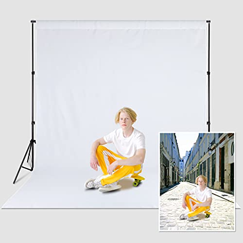Zdada White Backdrop Screen Background, 5x7ft/1.5x2.1M White Collapsible Background Photography, Washable Polyester Photography Backdrops for Photo Studio,Live Streaming,Meeting,Gaming(Backdrop Only)