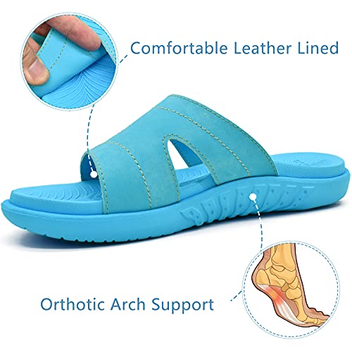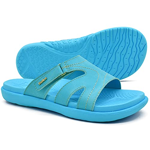 KuaiLu Womens Fashion Orthotic Sliders Ladies Lightweight Athletic Yoga Mat Sandals Slip on Thick Cushion Slippers Sandals with Comfortable Plantar Fasciitis Arch Support Blue 9