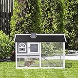 Pawhut - Rabbit Hutch and Run Guinea Pig Hutch Wooden Bunny Cage Asphalt Roof Grey