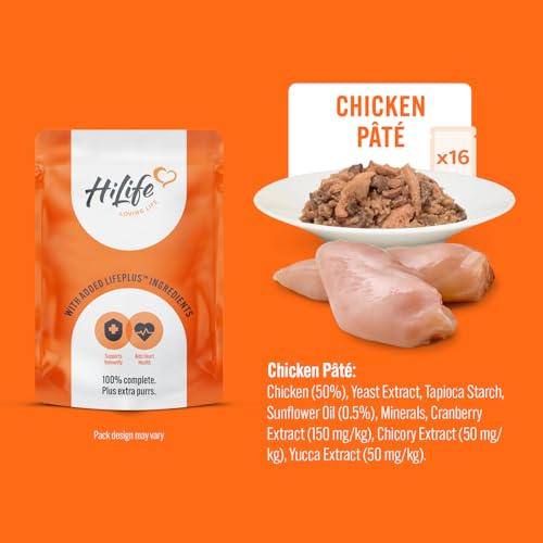 HiLife Kitten Wet Cat Food, Mixed Chicken & Tuna Pate Recipes, Complete Cat Food Pouches for Kittens 1 - 12 Months, 100% Natural & Grain Free (32 x 70g Pouches)