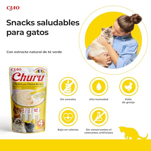 Ciao Churu Sticks by INABA Cat Treat - Chicken & Cheese Flavour 12 Pack (48 x 14g total) / Soft & Creamy Cat Treat, Delicious & Healthy Snack, Purée Food Topper, Pill Assist, Natural, Grain Free