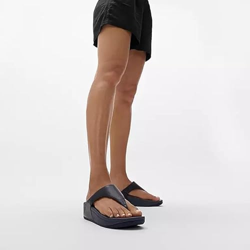 Fitflop Women's Lulu Shimmer Toe-Post Sandals, All Black, 8 UK