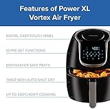 Power XL Vortex Air Fryer 4.7L - 5-in-1 Digital Air Fryer - 360 Degree Cyclonic Technology - 1 Large Detachable Basket - Makes Cooking with Less Oil & Fat Easier and Quicker - Recipe Book Included